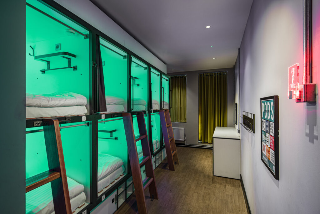 While sleeping pods offer more privacy than ever before, it features colourful LED lighting, cosy mattresses, and sockets for charging your electronics. In the individual pods, everyone has a much more marked space, so people are unlikely to leave their stuff everywhere on the ground. Additionally, the pod is designed with storage and a keypad locker. You can create your own pin code lock your important belongings. You might want to go to bed on an early evening to catch an early flight the next morning or sleepover after a night out, you can control your own light in the pod as opposed to a battle in a traditional bunk-bed dorm. The idea of sleeping in a pod is not only about saving money, but also became a trend and special place to sleep rather than a budget type accommodation.