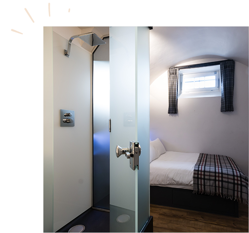 Once holding prisoners in the heart of Edinburgh, these cells now offer a one-of-a-kind stay for travellers wanting something truly memorable. Some of our Private Cells come with en-suite bathrooms, while others share well-maintained facilities nearby. Each room keeps the original charm of its past but is fitted with modern comforts.