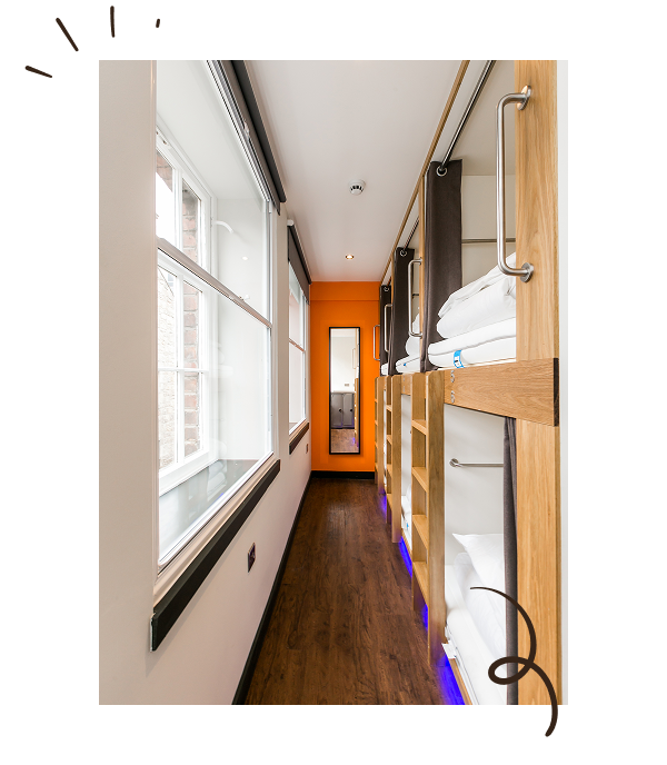 Yes! Every guest has access to personal lockers with their capsule bed, plus coat hooks inside each pod. Before check-in, you can also use our secure luggage cabinet free of charge to store your bags safely. We don’t offer overnight luggage storage, but we recommend nearby services such as Bounce Storage or Radical Storage for longer storage needs.