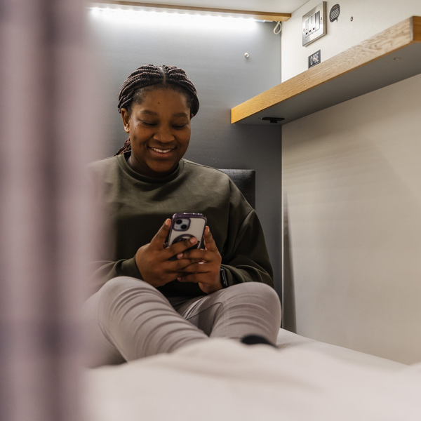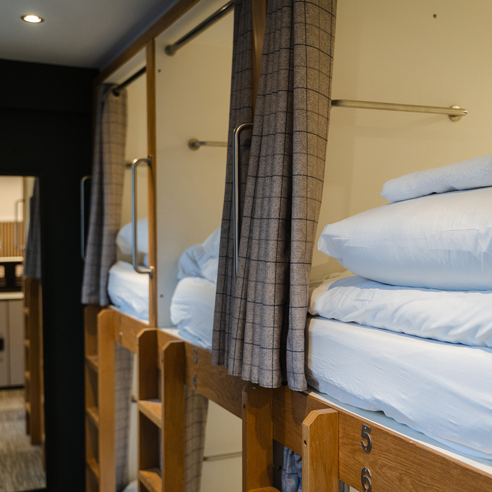 Each capsule offers your own private retreat with a curtain for seclusion, a reading light for late evenings, and charging sockets to keep your devices ready for the day ahead. Secure storage is available for all guests, so you can relax knowing your belongings are safe throughout your stay.