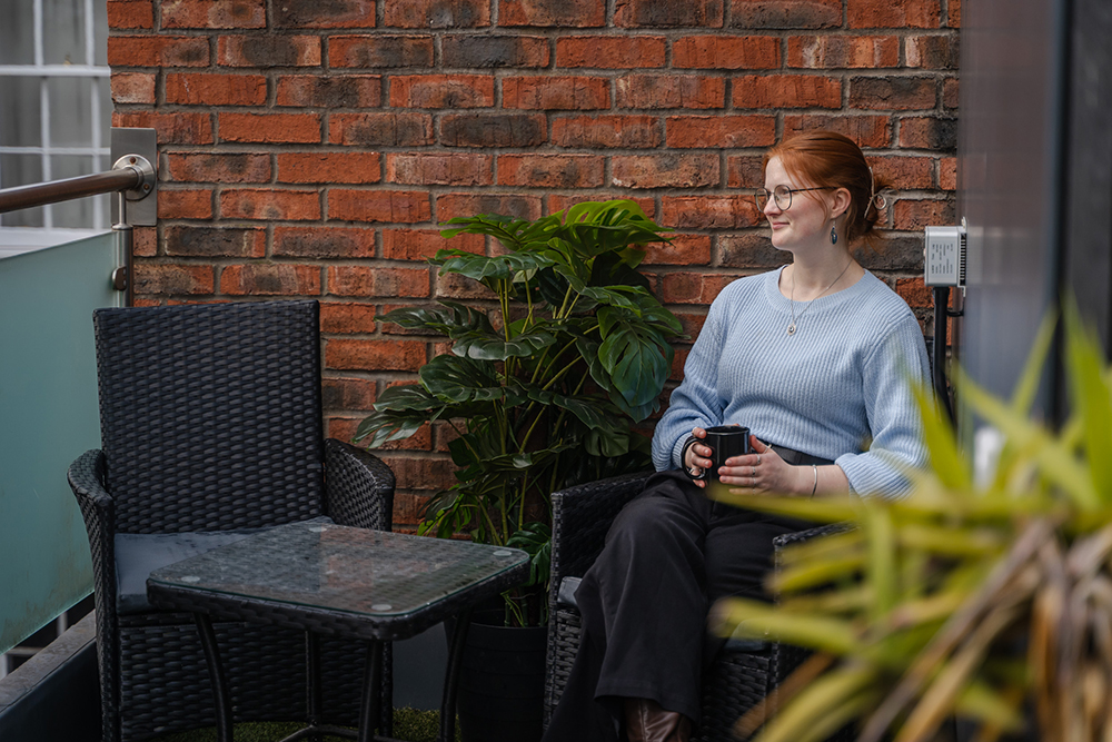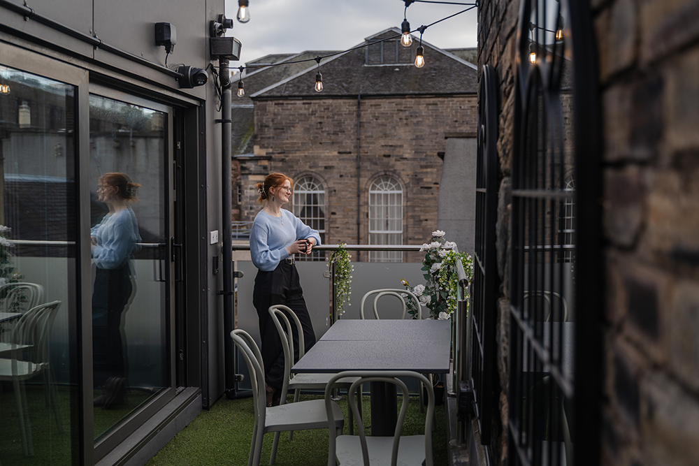 Step out onto the private roof terrace to enjoy a quiet moment in the city, with views over Edinburgh’s rooftops. It’s the perfect spot to unwind after a day of sightseeing, enjoy a morning coffee, or simply take in the city’s atmosphere in peace.