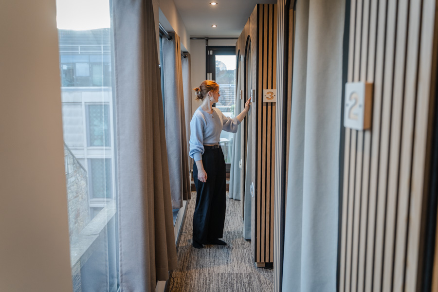 Edinburgh’s only female‑only penthouse dorm featuring the UK’s first full‑height Japanese‑style capsule beds.